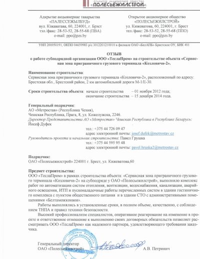 Компания «ТеслаПром» имеет успешный опыт выполнения электромонтажных и пусконаладочных работ на множестве значимых объектах в Республике Беларусь.